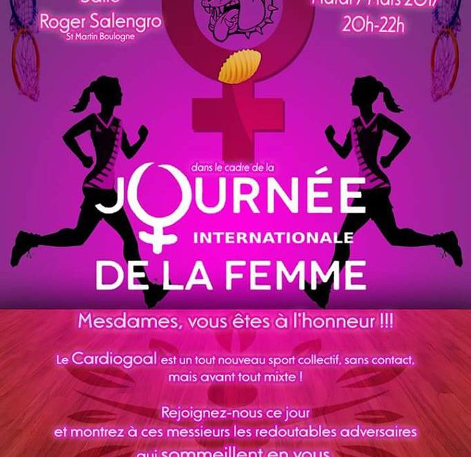 ÉVÉNEMENT CARDIOGOAL : LA JOURNÉE DE LA FEMME 7 mars 2017 Mesdames, le club de Cardiogoal de Saint-Martin vous attend pour un entraînement en l’honneur de la femme de 20h à 22h à salle Roger Salengro, rue du Capitaine Maire à Saint-Martin les Boulogne. A vos baskets, c’est cadeau !